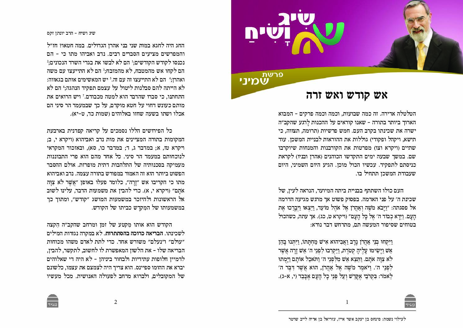 1. מדוע לדעתכם נענשו נדב ואביהוא בחומרה כזאת?