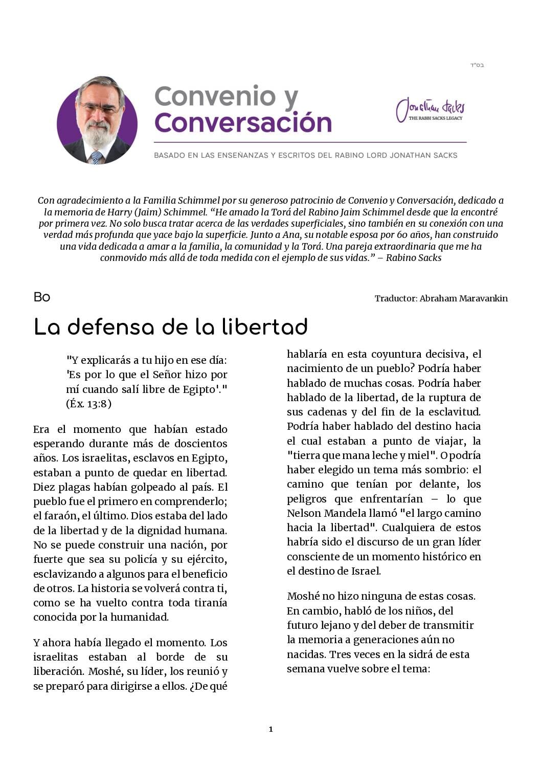 Esta idea, de consecuencias decisivas, fue articulada por primera vez por Moshé en la sidrá de esta semana, en sus palabras a los israelitas reunidos. Les estaba diciendo que la libertad es más que un momento de triunfo político. Es un esfuerzo constante, a lo largo de las generaciones, por enseñar a quienes vienen después de nosotros las luchas que libraron nuestros antepasados y por qué; para que mi libertad nunca sea sacrificada a la tuya, ni comprada al costo de la de otra persona. Por eso, hasta el día de hoy, en Pésaj comemos matzá, el pan ácimo de la aflicción, y probamos maror, las hierbas amargas de la esclavitud, para recordar el sabor punzante de la aflicción y no ser nunca tentados a afligir a otros.