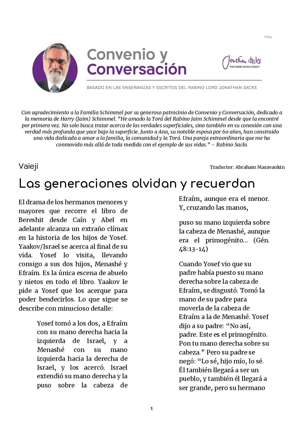 La bendición de Yaakov a Efraím por sobre Menashé no tuvo nada que ver con sus edades y todo que ver con sus nombres. Sabiendo que estos eran los primeros dos niños de su familia nacidos en el exilio, y sabiendo también que el exilio sería prolongado y en ocasiones difícil y oscuro, Yaakov buscó señalar a todas las generaciones futuras que existiría una tensión constante entre el deseo de olvidar (asimilarse, aculturarse, anestesiar la esperanza del retorno) y los impulsos de la memoria (el conocimiento de que esto es “exilio”, de que somos parte de otra historia, de que el hogar último está en otro lugar). El hijo del olvido (Menashé) puede recibir bendiciones. Pero mayores aún son las bendiciones del hijo (Efraím) que recuerda el pasado y el futuro del que forma parte.
