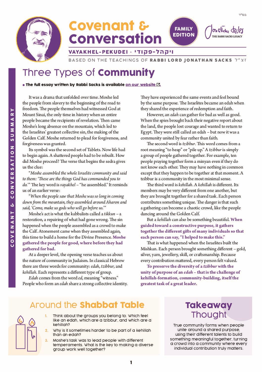 1. Think about the groups you belong to. Which feel like an edah, which are a tzibbur, and which are a kehillah?