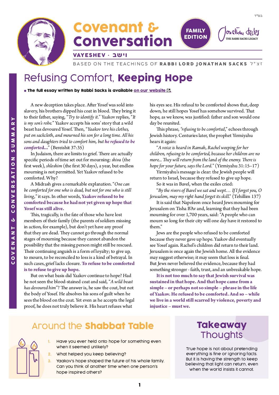 Yaakov refuses to be comforted after Yosef’s disappearance. He doesn’t seem optimistic – but he still holds on to hope.