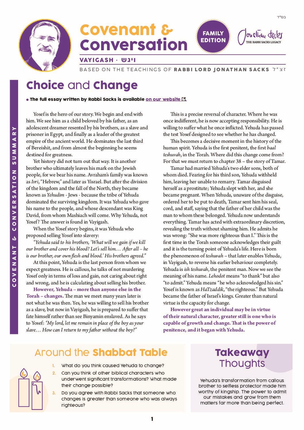 However great an individual may be in virtue of their natural character, greater still is one who is capable of growth and change. That is the power of penitence, and it began with Yehuda.