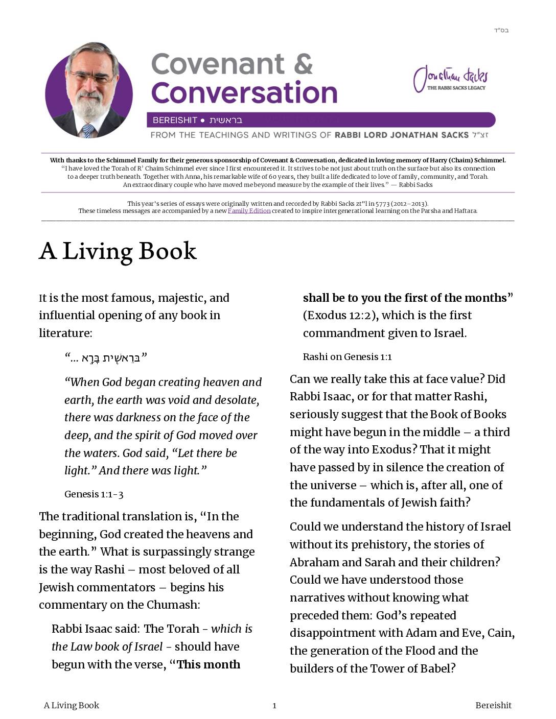 The Covenant & Conversation: Family Edition offers ways for students of all ages to engage with these ideas, and delve deeper into the weekly Parsha, the Rabbi Sacks commentary, and intergenerational conversation.