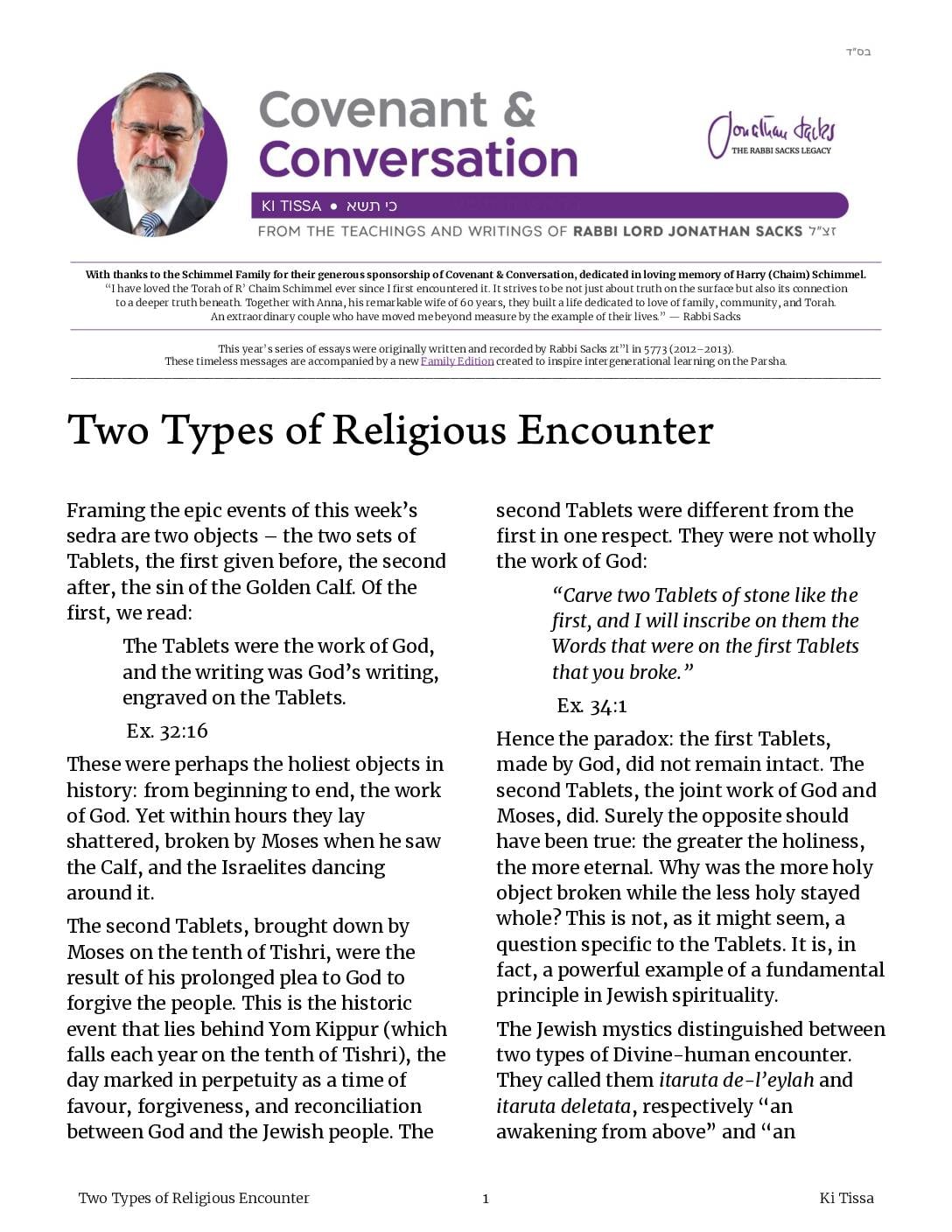 With thanks to the Schimmel Family for their generous sponsorship of Covenant & Conversation, dedicated in loving memory of Harry (Chaim) Schimmel.