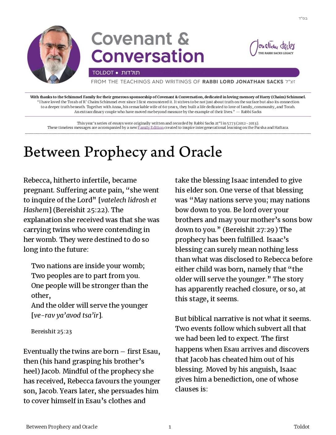 With thanks to the Schimmel Family for their generous sponsorship of Covenant & Conversation, dedicated in loving memory of Harry (Chaim) Schimmel.