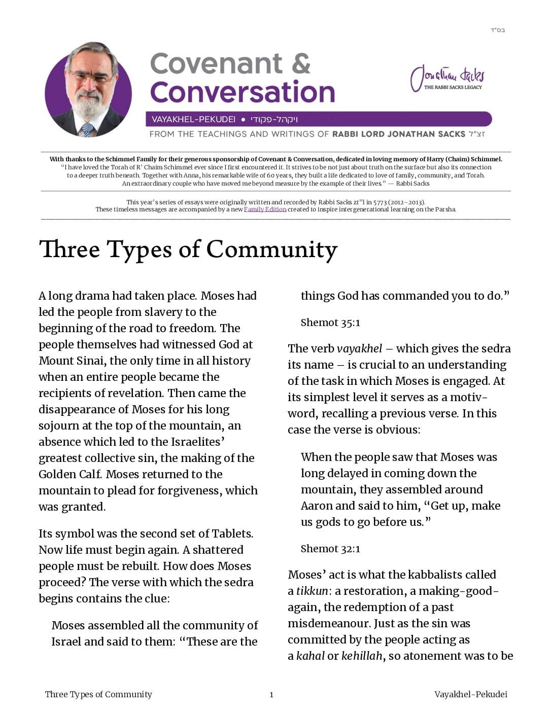The verb vayakhel – which gives the sedra its name – is crucial to an understanding of the task in which Moses is engaged. At its simplest level it serves as a motiv-word, recalling a previous verse. In this case the verse is obvious: