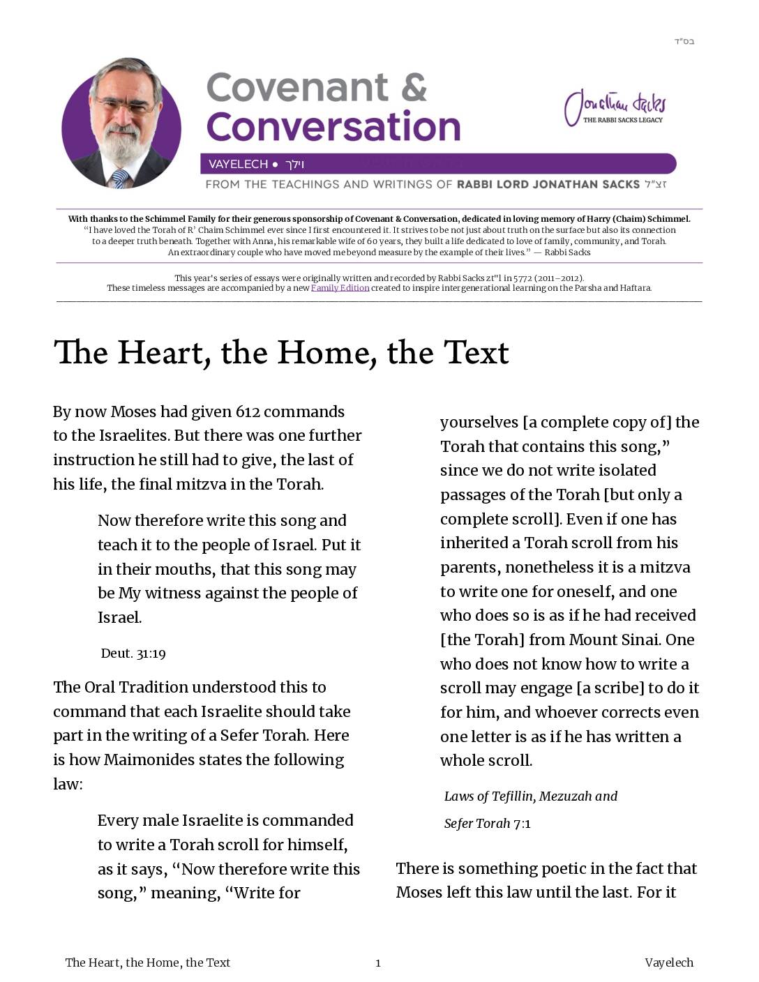 With thanks to the Schimmel Family for their generous sponsorship of Covenant & Conversation, dedicated in loving memory of Harry (Chaim) Schimmel.