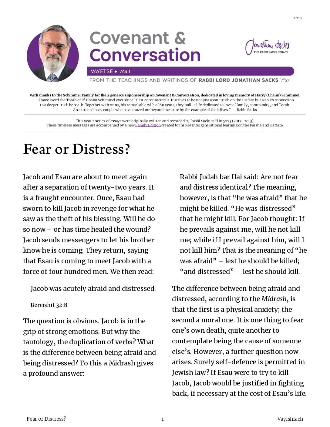 With thanks to the Schimmel Family for their generous sponsorship of Covenant & Conversation, dedicated in loving memory of Harry (Chaim) Schimmel.