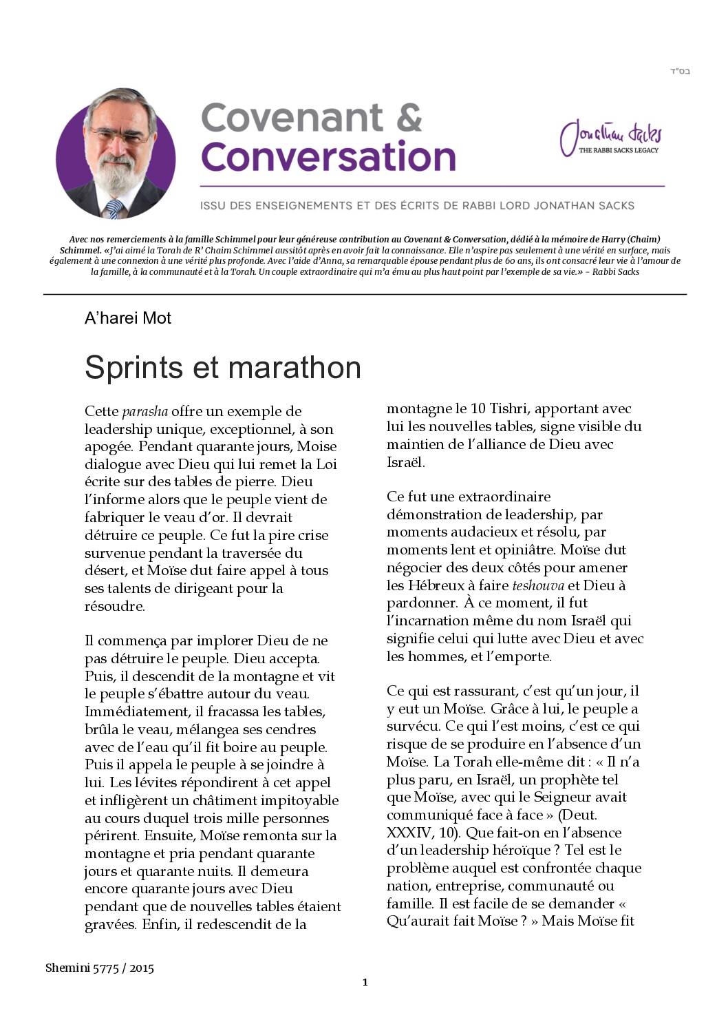 Transformer les idéaux en codes d’action qui façonnent les habitudes du cœur, c’est le propre même du judaïsme et du leadership. Ne jamais perdre l’inspiration des prophètes, mais ne jamais perdre non plus les routines qui transforment les idéaux en actes et les rêves en réalité.